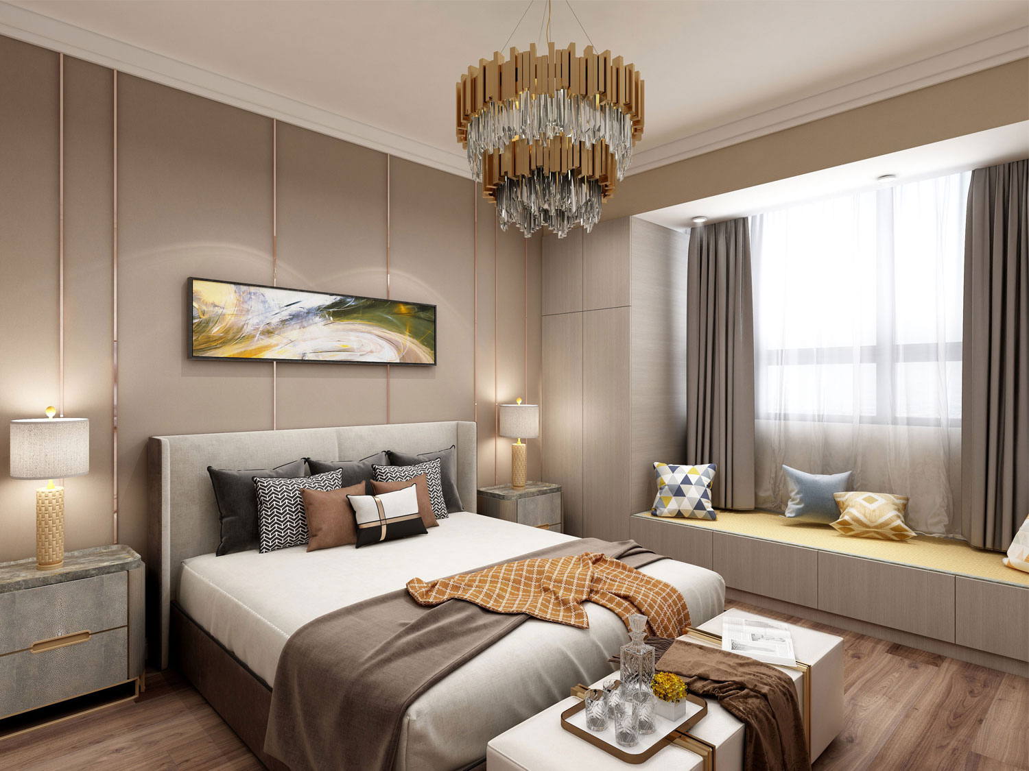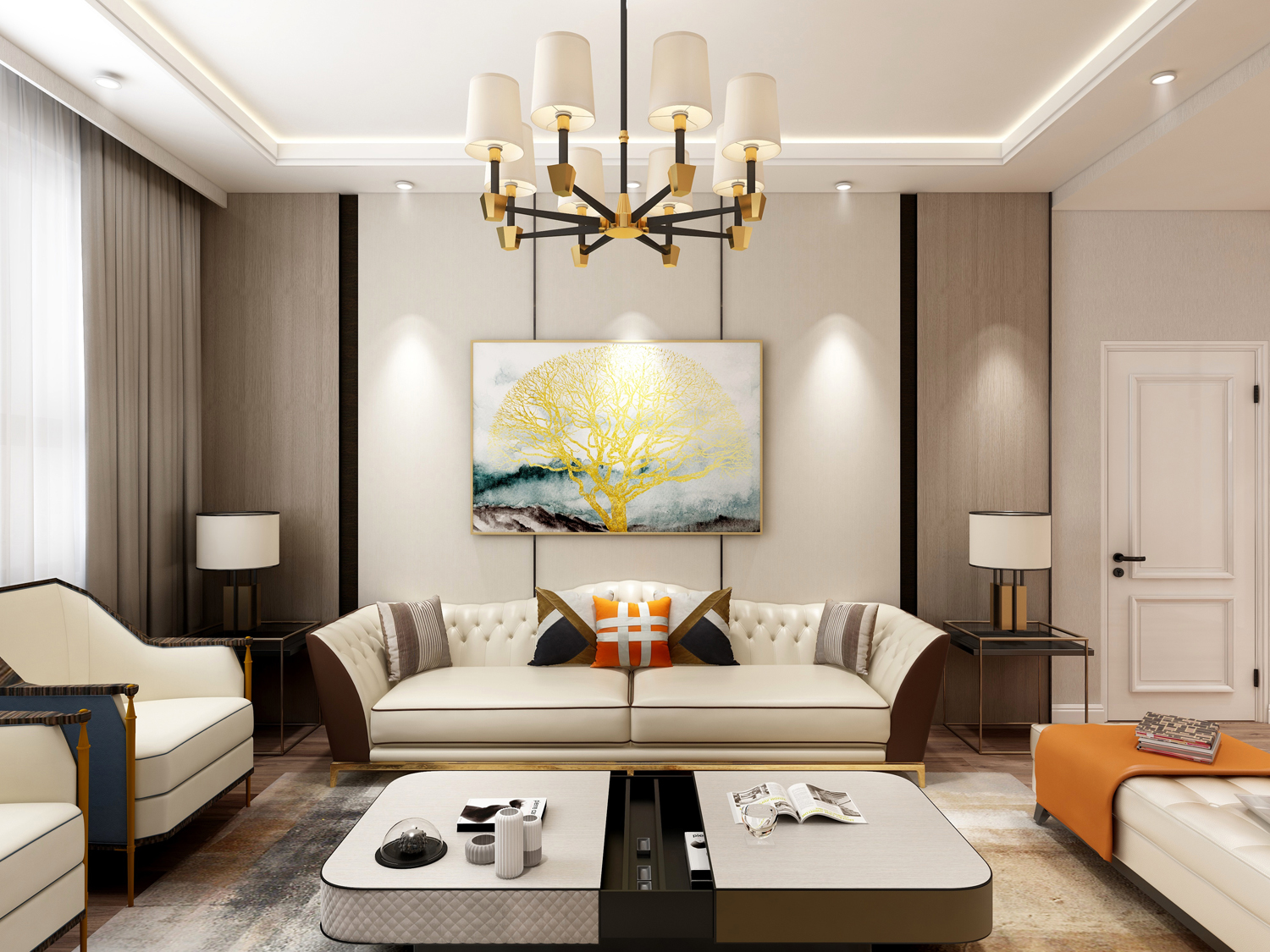 該房屋采用現(xiàn)代輕巧的裝飾風(fēng)格,整體上保持了的典雅氣質(zhì)風(fēng)格,在材料,顏色和形狀,實(shí)用,簡(jiǎn)單,大方等方面都以現(xiàn)代技術(shù)表達(dá)。在表達(dá)技術(shù)上,對(duì)歐洲風(fēng)格沒(méi)有限制,并且采用了許多在中國(guó)園林中使用風(fēng)景和風(fēng)景的方法。在一個(gè)重要的轉(zhuǎn)折點(diǎn),末端裝飾有精美的懸掛裝飾擺件,并輔以照明裝飾的照明,以通過(guò)幾何圖形“框架”實(shí)現(xiàn)框架的作用,從而形成一個(gè)整體。這個(gè)空間充滿了樂(lè)趣和設(shè)計(jì)。   常住人口是業(yè)主和夫妻,空間的原始布局根據(jù)業(yè)主的生活方式和愛(ài)好而大大改變,根據(jù)現(xiàn)有的基于白色系統(tǒng)的大型典雅清淡色家具,它具有藍(lán)灰色,金色等典雅而豪華的風(fēng)格。在材質(zhì)上,石材,鍛鐵等表現(xiàn)出高貴典雅的高貴氣質(zhì)。   在臥室的設(shè)計(jì)中,我放棄了所有繁瑣的設(shè)計(jì),并恢復(fù)了其原始狀態(tài)。簡(jiǎn)單的色彩加上一些色彩鮮艷的配飾,主燈光的設(shè)計(jì),壁紙的溫暖力求創(chuàng)造一個(gè)簡(jiǎn)單,溫暖和舒適的睡眠環(huán)境。