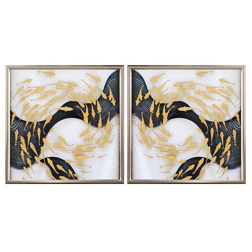 輕奢玄關(guān)裝飾畫實(shí)物畫餐廳壁畫客廳組合掛畫墻畫 遨游組合畫