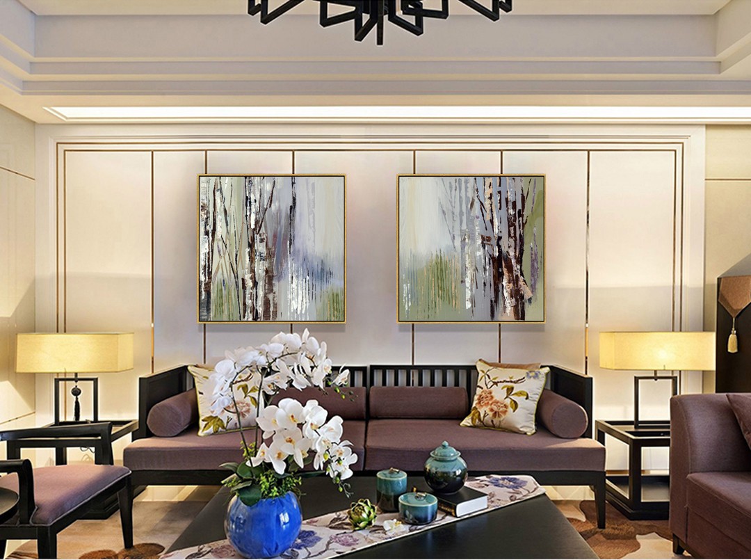 餐廳裝飾畫客廳沙發(fā)背景墻壁畫飯廳掛畫 北歐現(xiàn)代抽象樹葉系列 抽象樹林