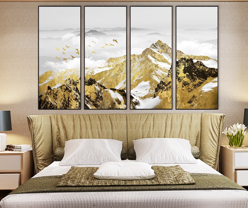 輕奢現(xiàn)代簡(jiǎn)約客廳裝飾畫沙發(fā)背景墻組合掛畫四組合 微噴繪高清打印 山巔云海