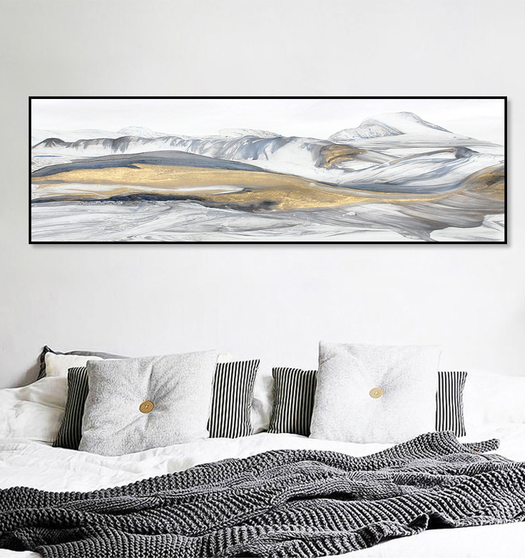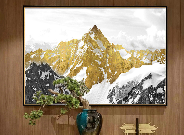 臥室床頭抽象水墨掛畫 山水風(fēng)景裝飾畫 新工藝晶瓷畫 流金雪山