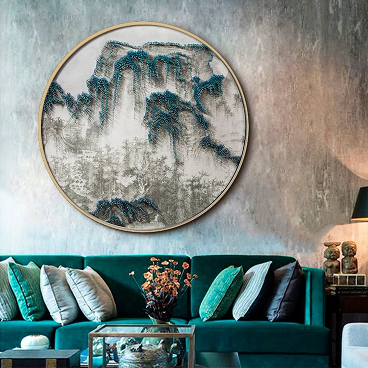 新中式客廳禪意裝飾畫立體手工山水圓形釘子畫樣板房過道掛畫壁畫