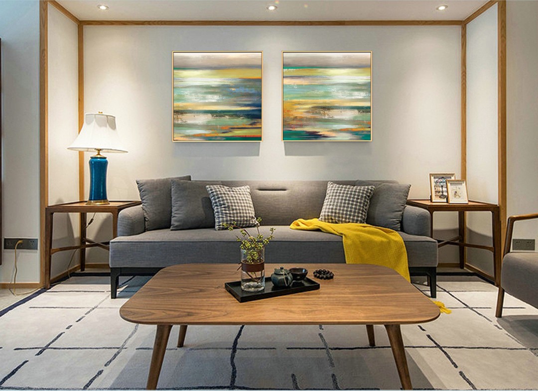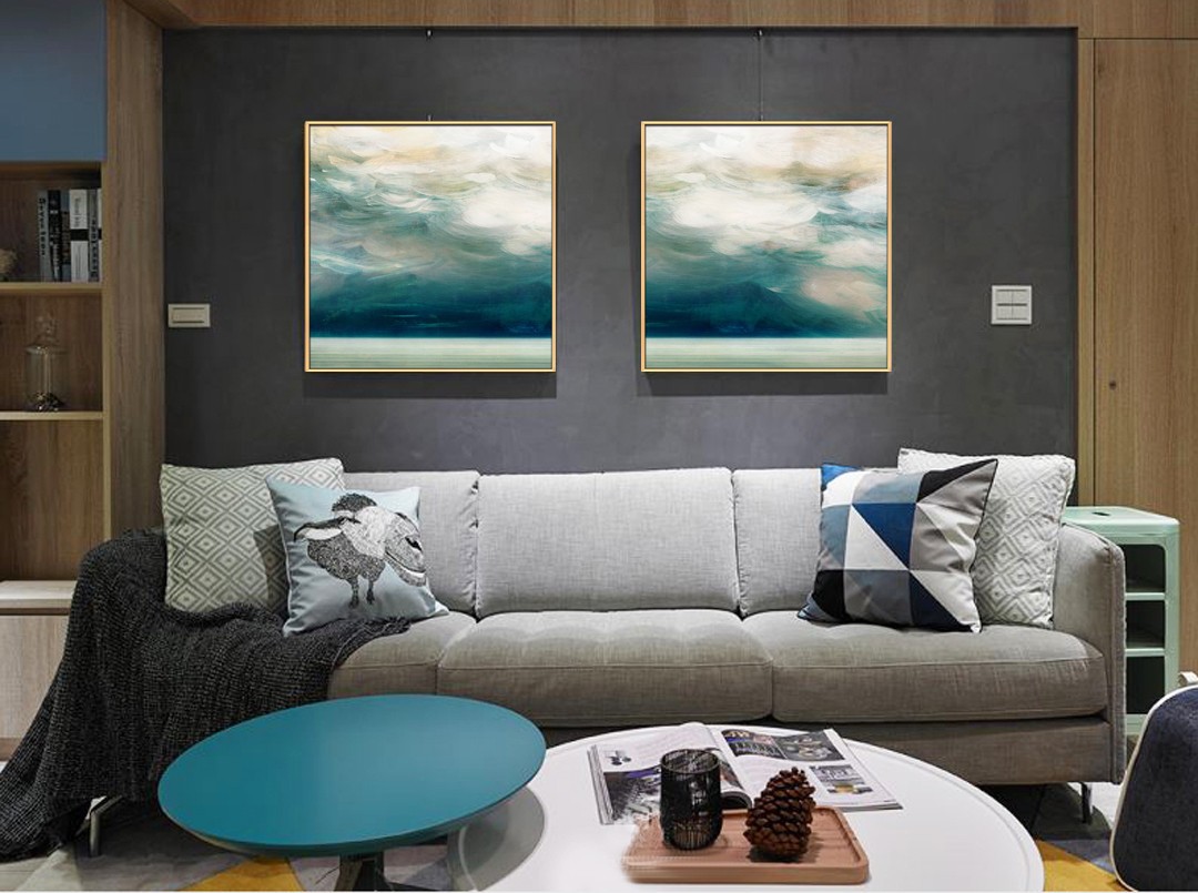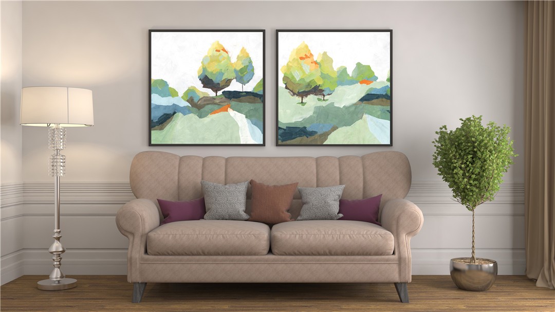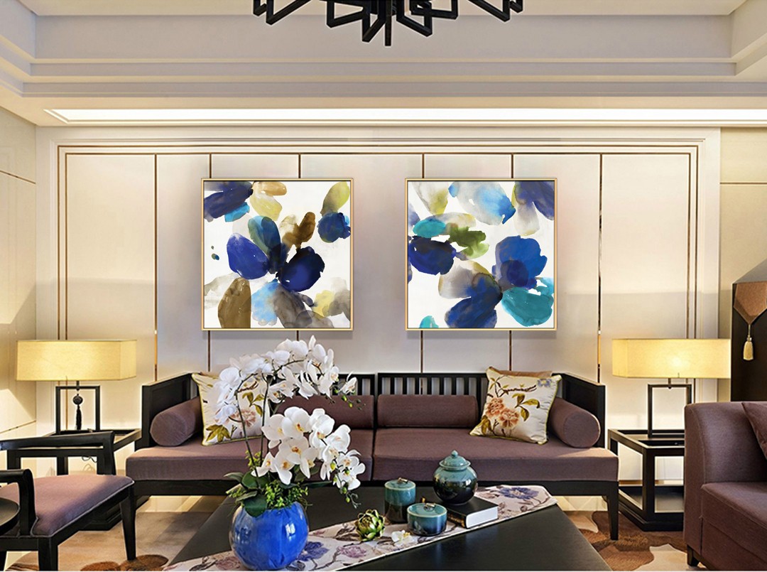 現(xiàn)代簡約植物系列壁畫餐廳裝飾畫玄關(guān)掛畫晶瓷畫 雙拼系列 抽象云山