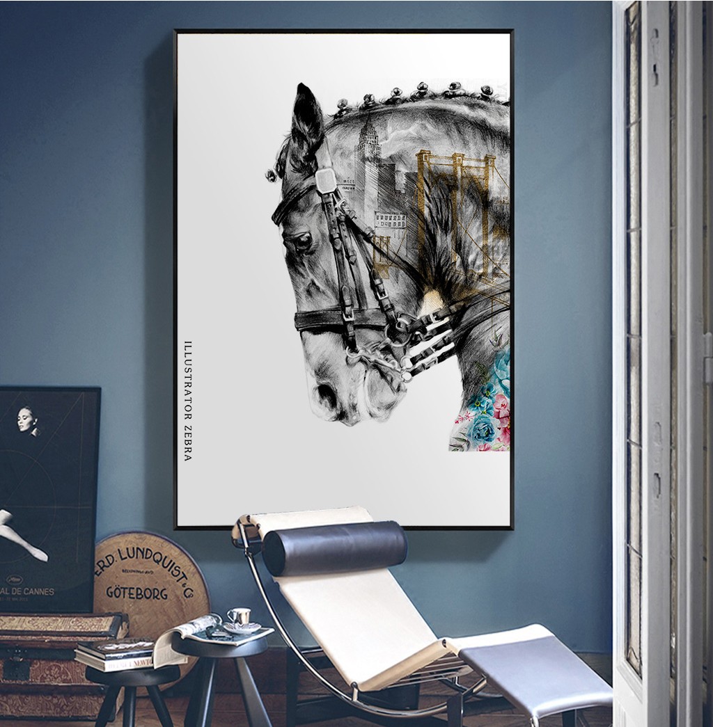 現(xiàn)代簡約客廳掛畫臥室藝術(shù)裝飾畫手繪油畫 馬頭
