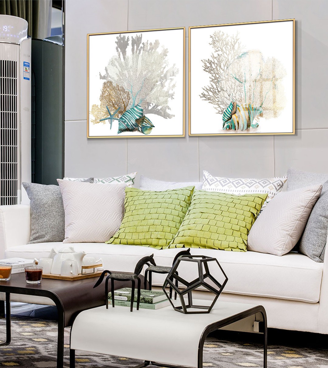 現(xiàn)代簡約植物系列壁畫餐廳裝飾畫玄關(guān)掛畫晶瓷畫 雙拼系列 海底植物