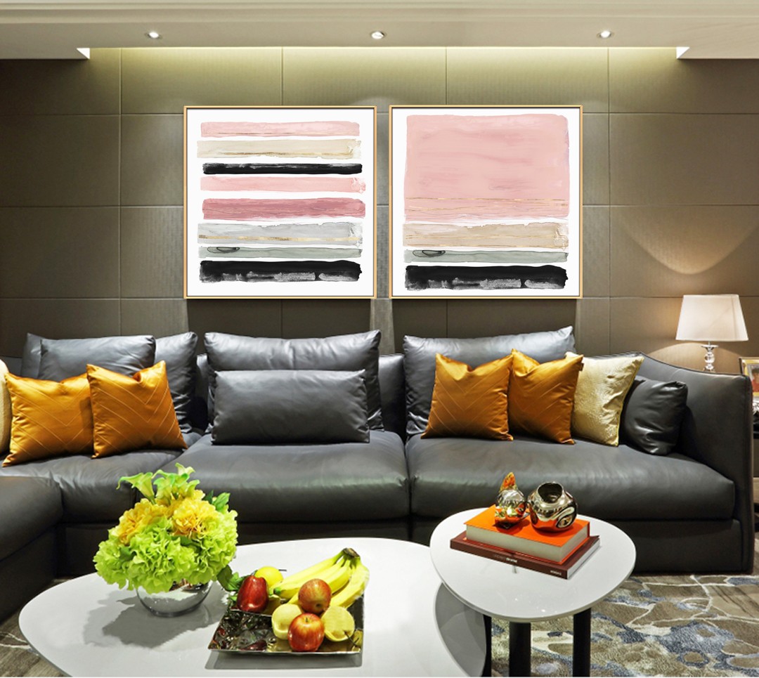 現(xiàn)代簡約植物系列壁畫餐廳裝飾畫玄關(guān)掛畫晶瓷畫 雙拼系列 抽象線條