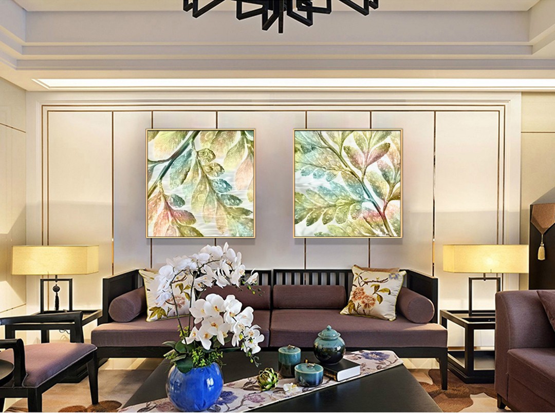 現(xiàn)代簡約植物系列壁畫餐廳裝飾畫玄關(guān)掛畫晶瓷畫 雙拼系列1