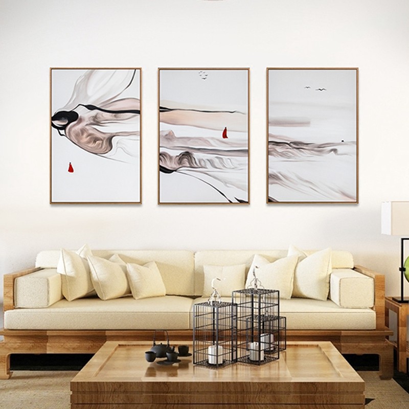 新中式客廳裝飾畫臥室原創(chuàng)純手繪禪意圖玄關(guān)環(huán)保PS框掛畫 禪意