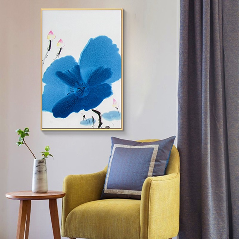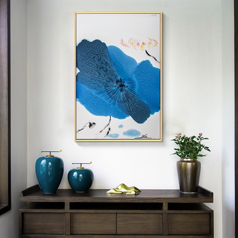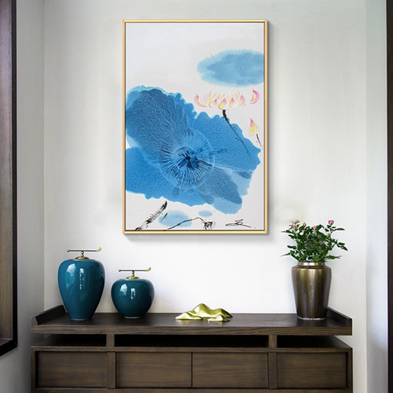 新中式客廳裝飾畫臥室原創(chuàng)純手繪禪意圖玄關(guān)鋁合金框掛畫 荷葉1