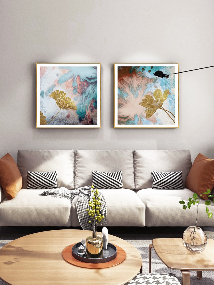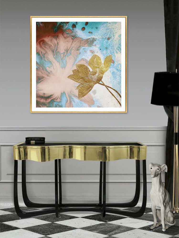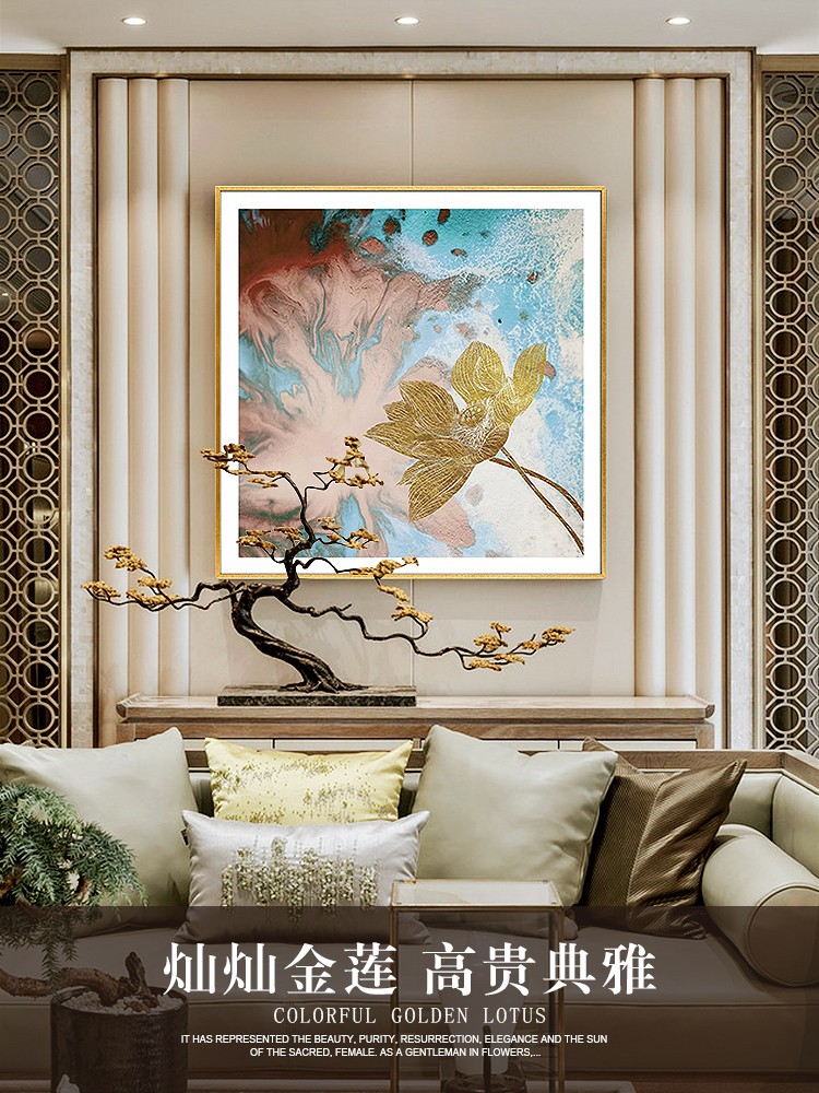 現(xiàn)代簡(jiǎn)約客廳裝飾畫(huà)餐廳壁畫(huà)玄關(guān)臥室床頭畫(huà) 純手繪油畫(huà) 輕奢 金荷