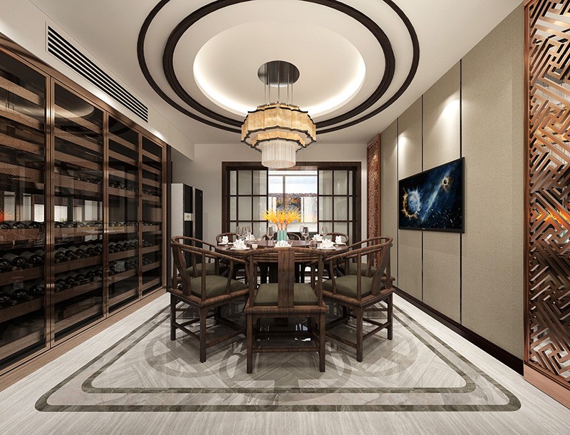 500m2別墅大宅來了,整面時尚的壁柜靜靜矗立,穩(wěn)重的木柵格吊頂,活躍錯落的射燈將整體畫面在縱向關(guān)系上處理得更加融洽,遼陽大宅別墅裝飾滿足對家的期待!