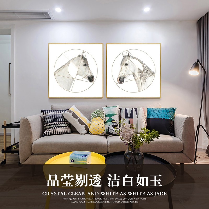 現(xiàn)代簡約幾何圖形壁畫餐廳裝飾畫玄關(guān)掛畫晶瓷畫 純手繪油畫 駿馬