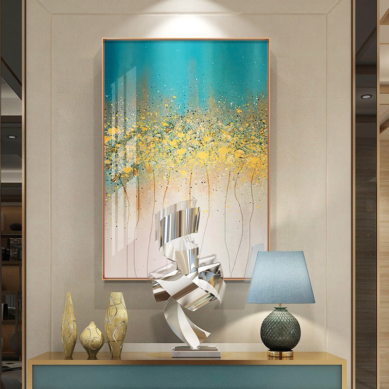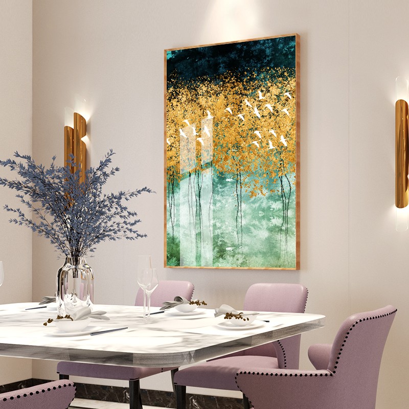 金色輕奢抽象美式餐廳掛畫客廳沙發(fā)背景墻裝飾畫三聯(lián)壁畫現(xiàn)代簡約 純手繪油畫 晚樹