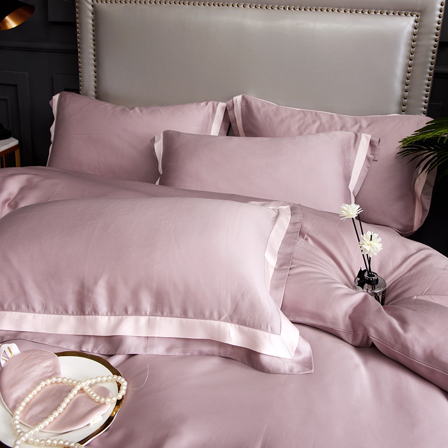 床上用品 純棉四件套 蕾絲工藝 60天絲純色工藝系列 豆沙