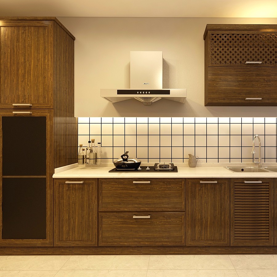 【星空梵高】現(xiàn)代簡約整體定制櫥柜石英石臺面 模壓-橫紋顆粒皇家柚木