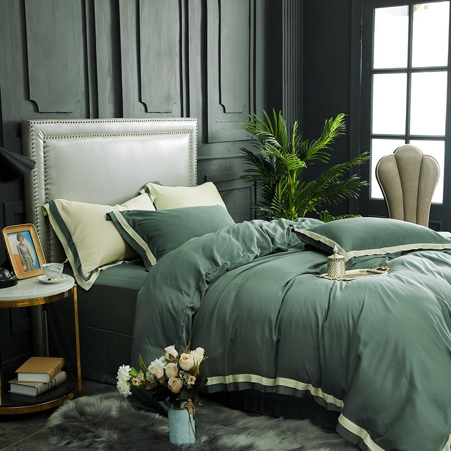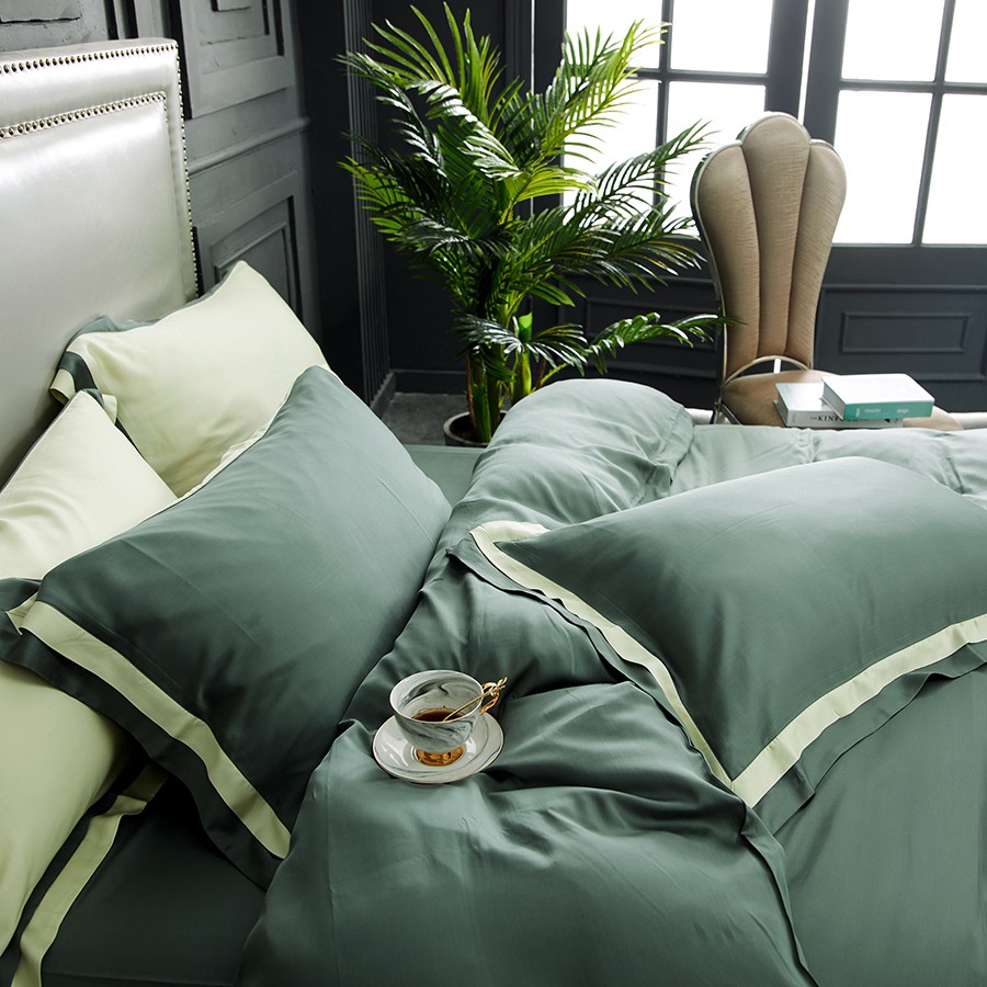 床上用品 純棉四件套 蕾絲工藝 60天絲純色工藝系列 松綠