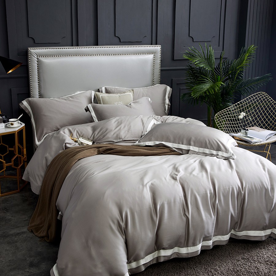 床上用品 純棉四件套 蕾絲工藝 60天絲純色工藝系列 星灰銀