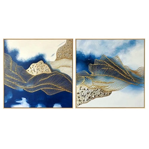 現(xiàn)代抽象純手繪油畫客廳雙拼組合畫玄關(guān)走廊豎版裝飾畫 幻靈